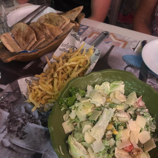 Pictured above: pita, fried potatoes, and Ceasar sald